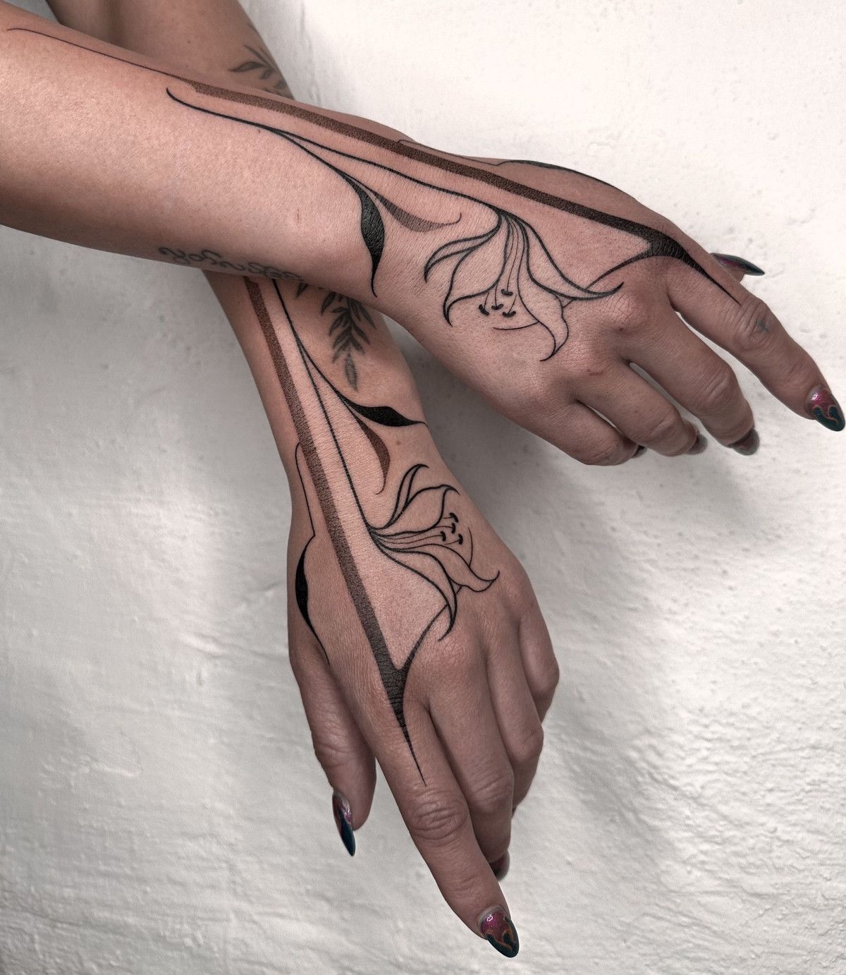 my name is maya and i'm a hamburg based tattoo artist. i’ve been tattooing since 2020 and my style has been continuously evolving since then. right now my main focus is incorporating the natural flow of the body with the precise lines and exact symmetry that i’ve loved since the beginning.